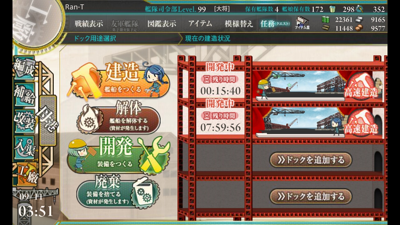 さて、今日は入渠ついでに表とか作ってました。